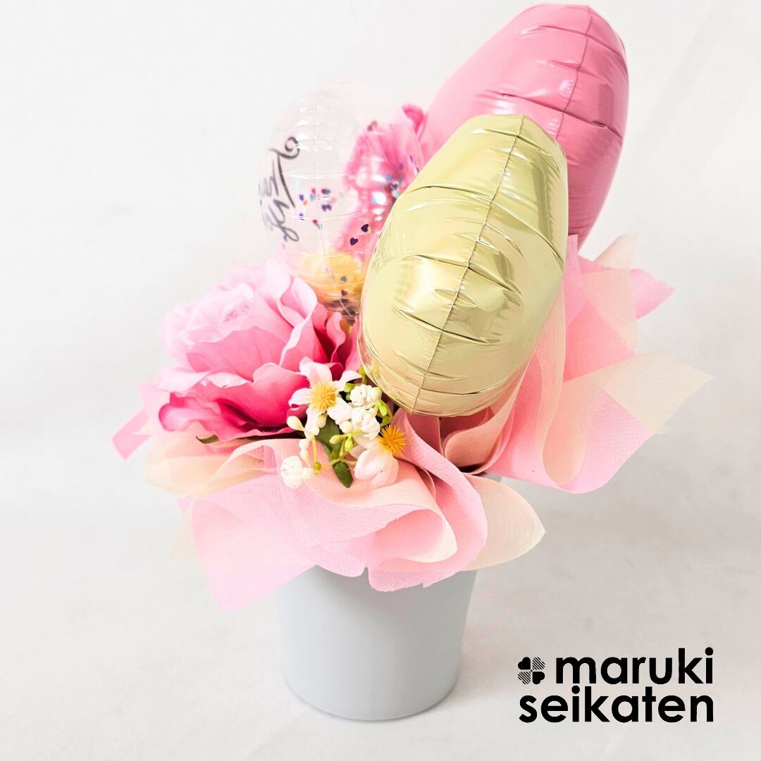 バルーンを入れたアーティフィシャル(造花)のアレンジメントです。